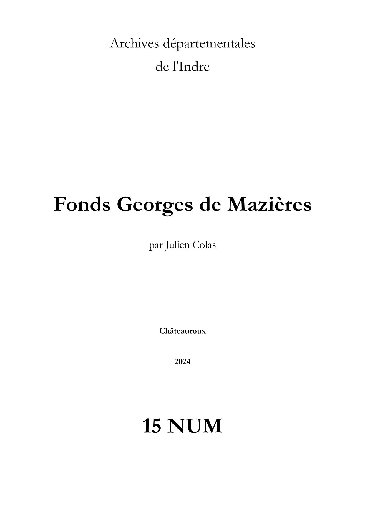 Fonds Georges de Mazières (15 NUM)