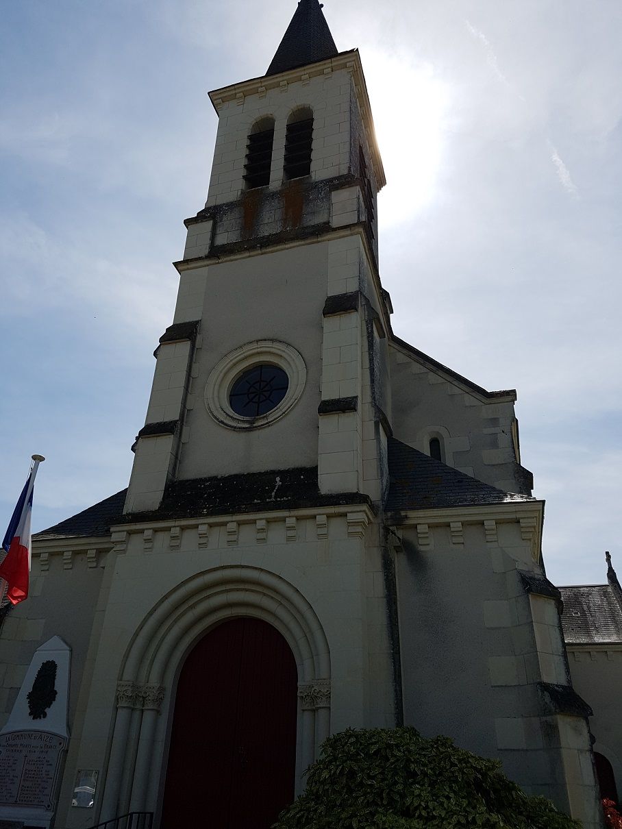 La construction de l'église Saint-Hilaire d'Aize a été achevée en 1869 par l'architecte départemental Alfred Dauvergne. Le clocher, situé au-dessus du porche d'entrée, abrite une unique cloche, datant de 1495. Cette cloche a été fabriquée en airain, un bronze obtenu par un alliage de cuivre et d'étain, prisé pour ses qualités musicales. Elle provient sans doute de l'ancienne église de la paroisse, située aux Terres Fortes. Elle a été provisoirement conservée dans l'église de Buxeuil, dont Aize a été un temps succursale, avant d'être de nouveau attribuée à la fabrique d'Aize en 1872 à la suite d'un décret du président de la République, Adolphe Thiers.