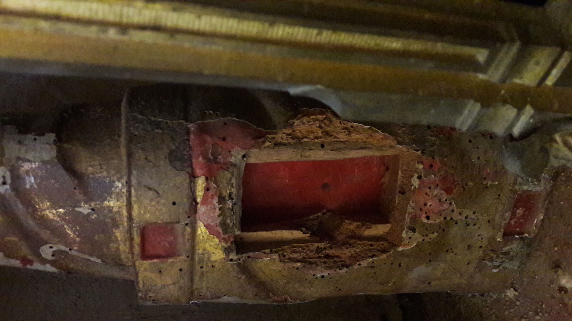 Or, comme l’illustrent les clichés, ces deux bras reliquaires sont en péril car attaqués par des insectes xylophages qui ruinent petit à petit les deux œuvres. Aussi la commune de Vatan a-t-elle pris la décision de les restaurer. Soutenue par la DRAC et le Département de l’Indre, la première étape préalable à leur restauration consiste en une mise en anoxie. C’est l’atelier 3PA de La Croix-en-Touraine qui a assuré ce traitement.