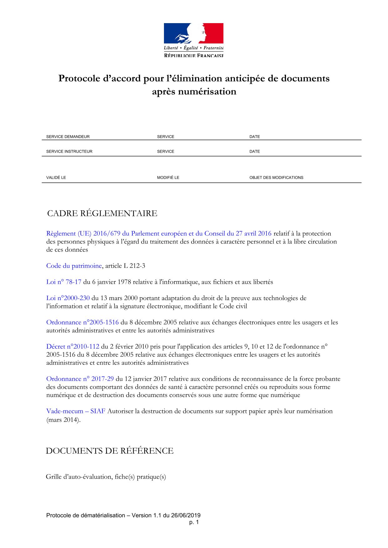 - un modèle de protocole d’accord pour l’élimination des originaux papier après numérisation