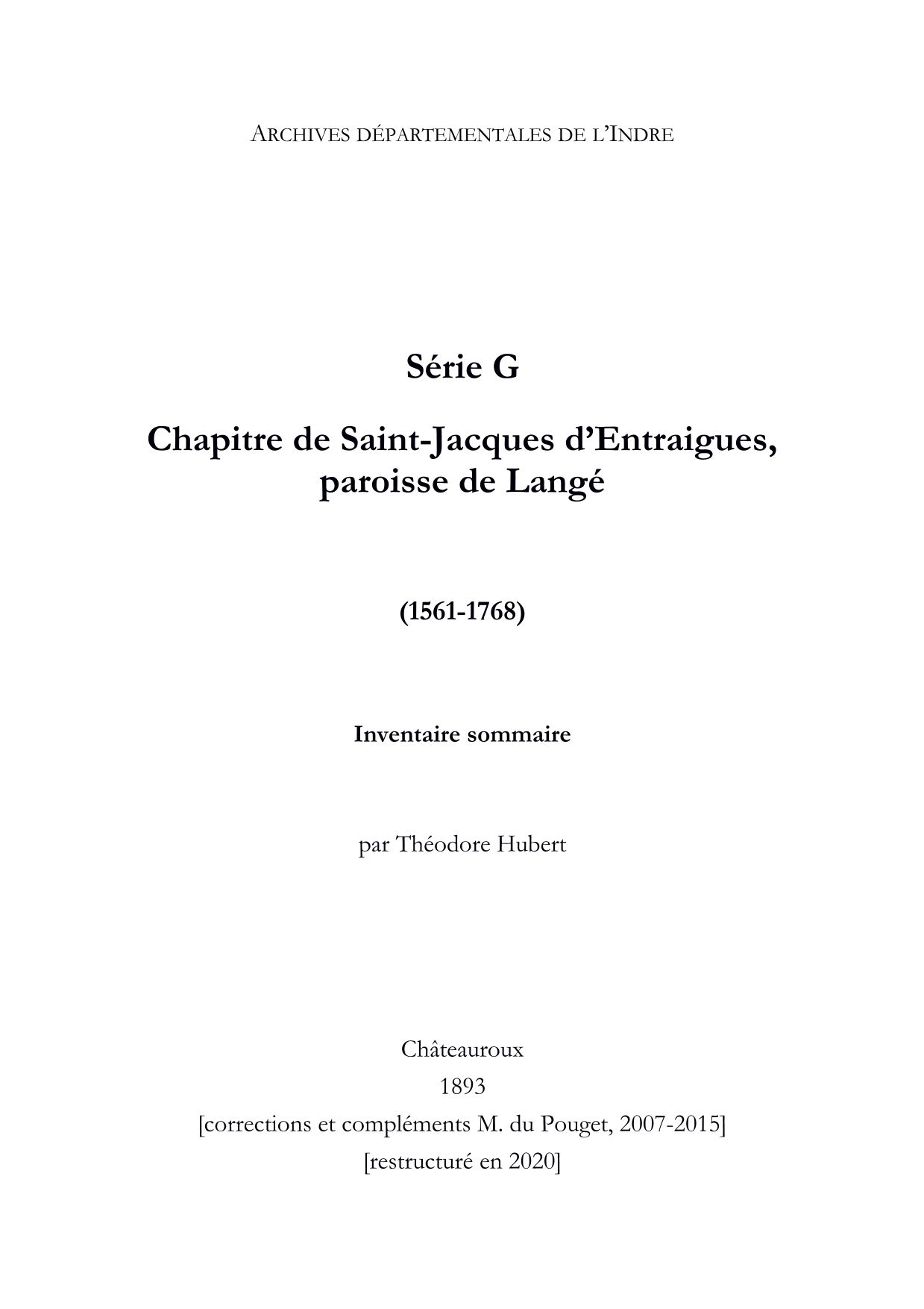 Chapitre de Saint-Jacques d'Entraigues, paroisse de Langé