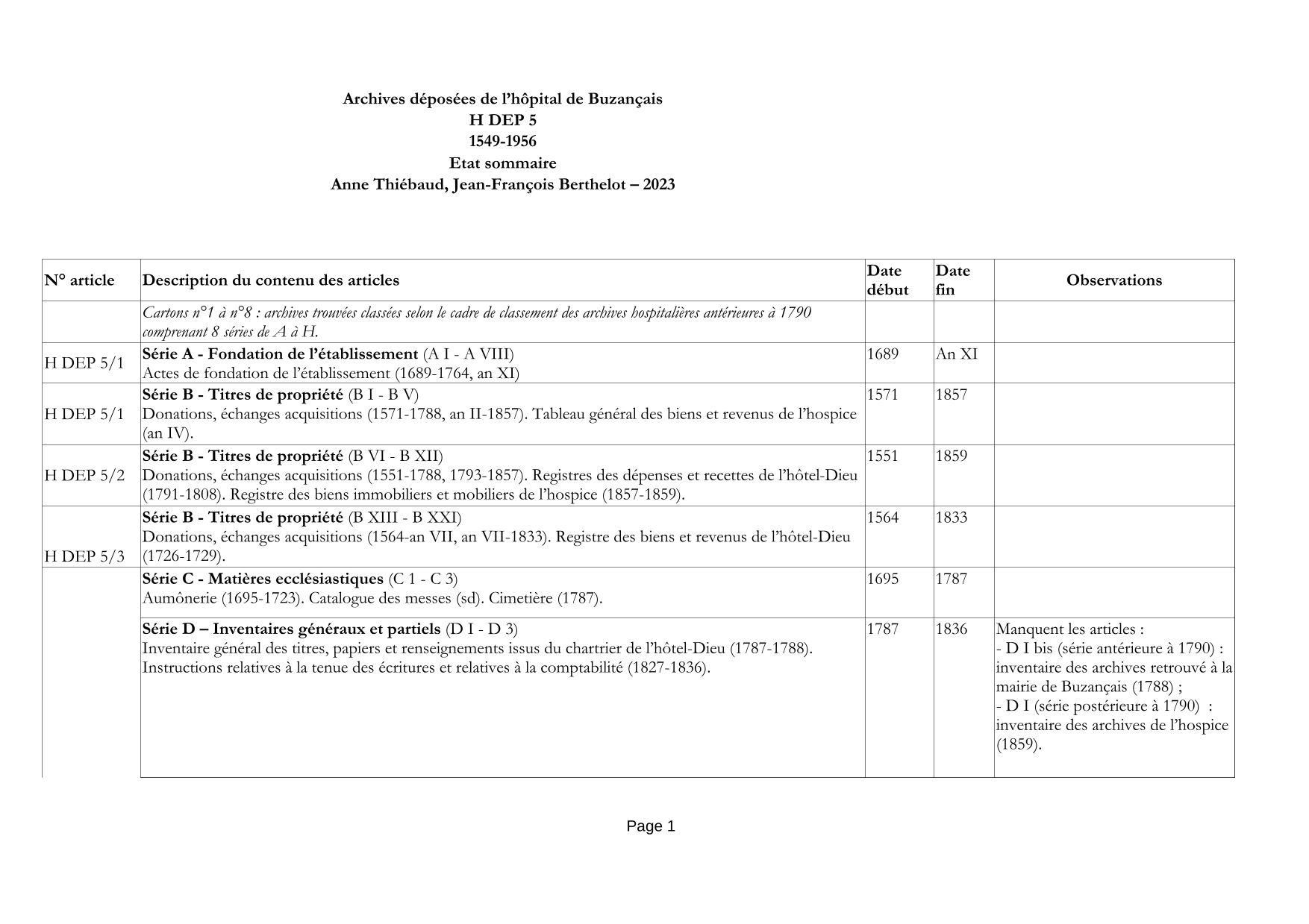 Ce fonds a été pris en charge en 2023. Il contient des archives remontant au XVIe siècle concernant les titres de propriété de l'établissement sous l'Ancien Régime, l'administration et la comptabilité de l'établissement ainsi que la population au XIXe et début du XXe siècle, avec notamment quelques documents sur les réfugiés espagnols (1936-1943), les réfugiés du Calvados et les FFI soignés pendant la seconde guerre mondiale.