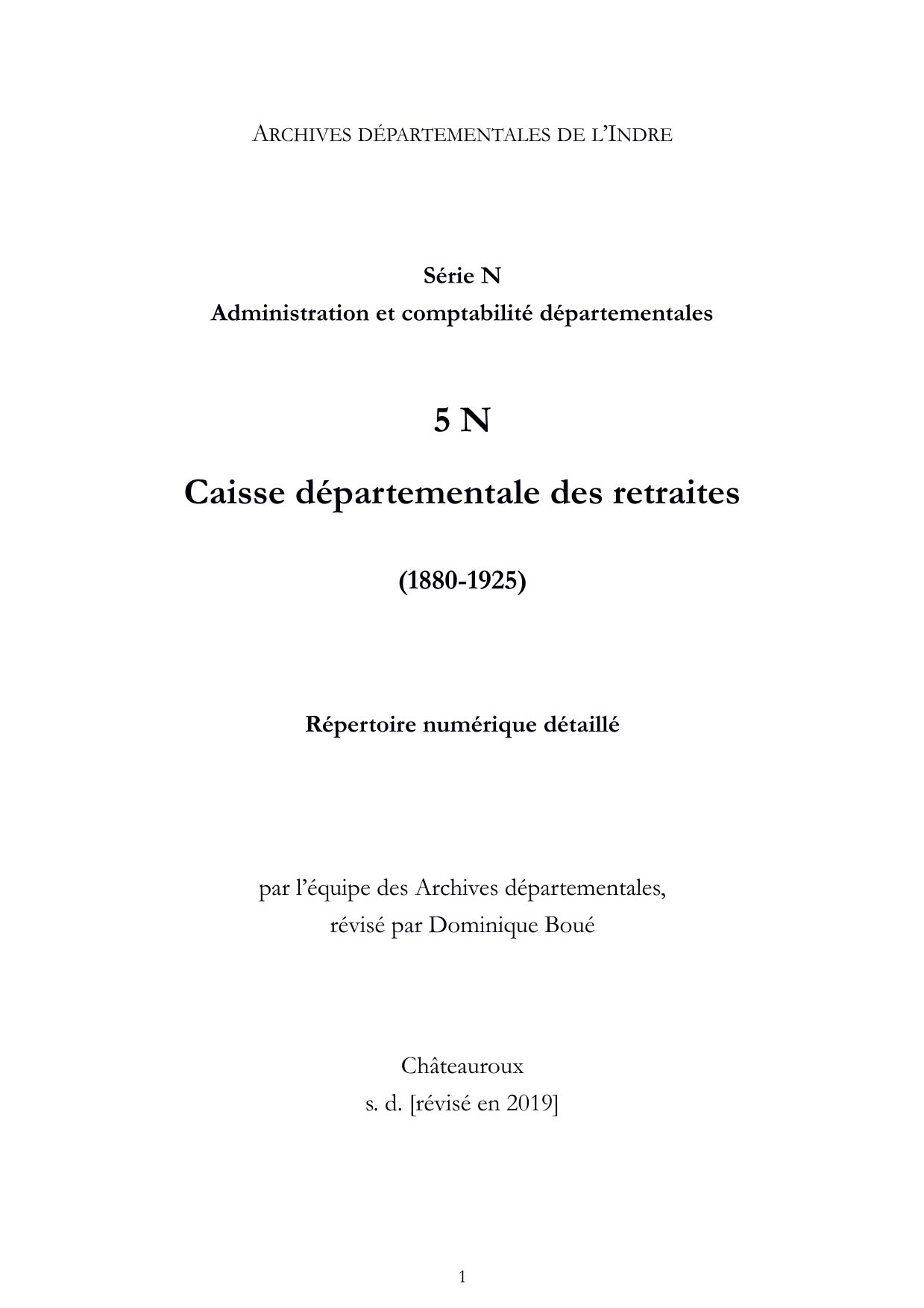 - Caisse départementale des retraites [5 N] : seuls trois articles sont conservés.