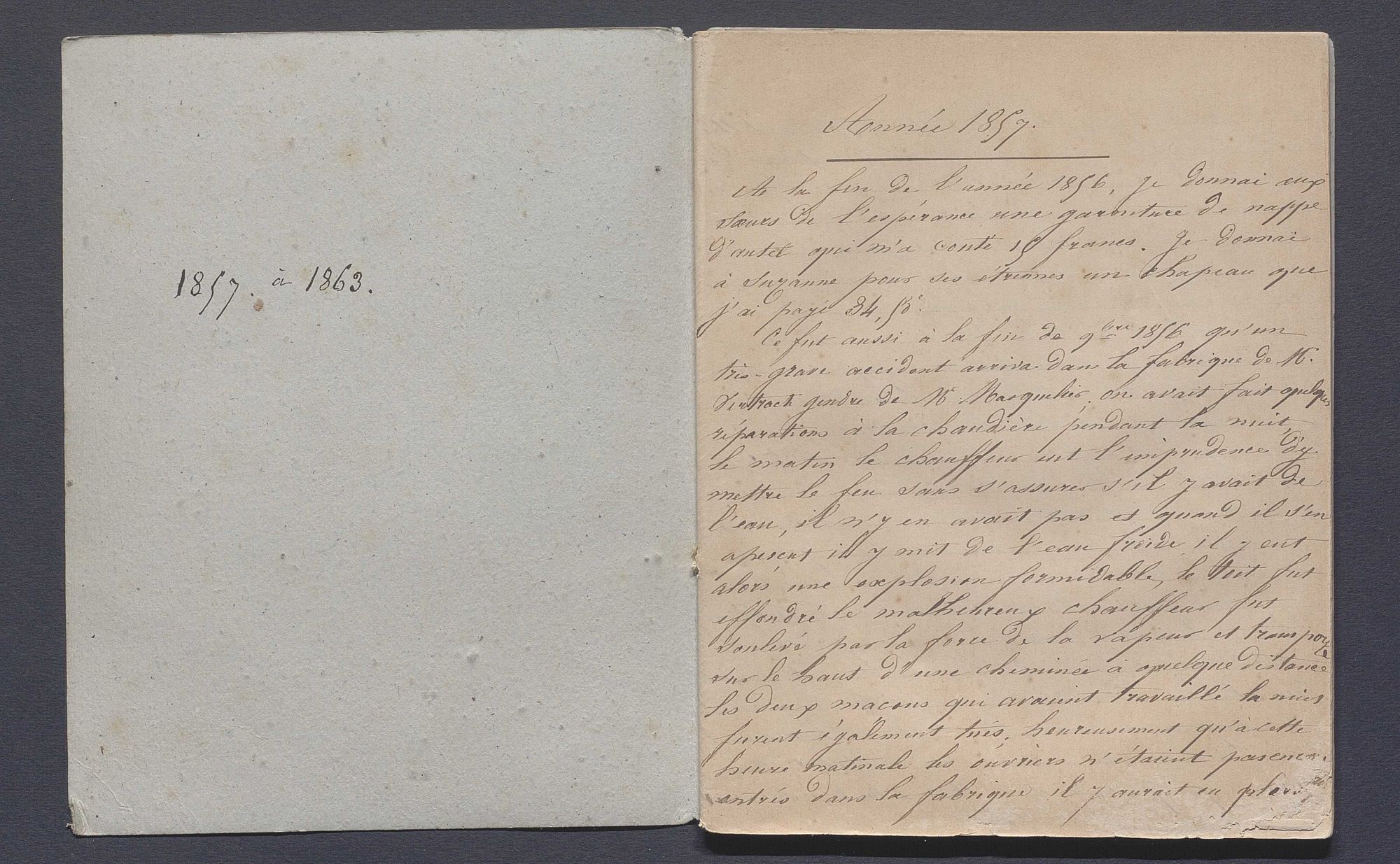 - Carnet intitulé "Souvenirs, lettres, dates, notes" contenant notamment des transcriptions de lettres, XIXe siècle.