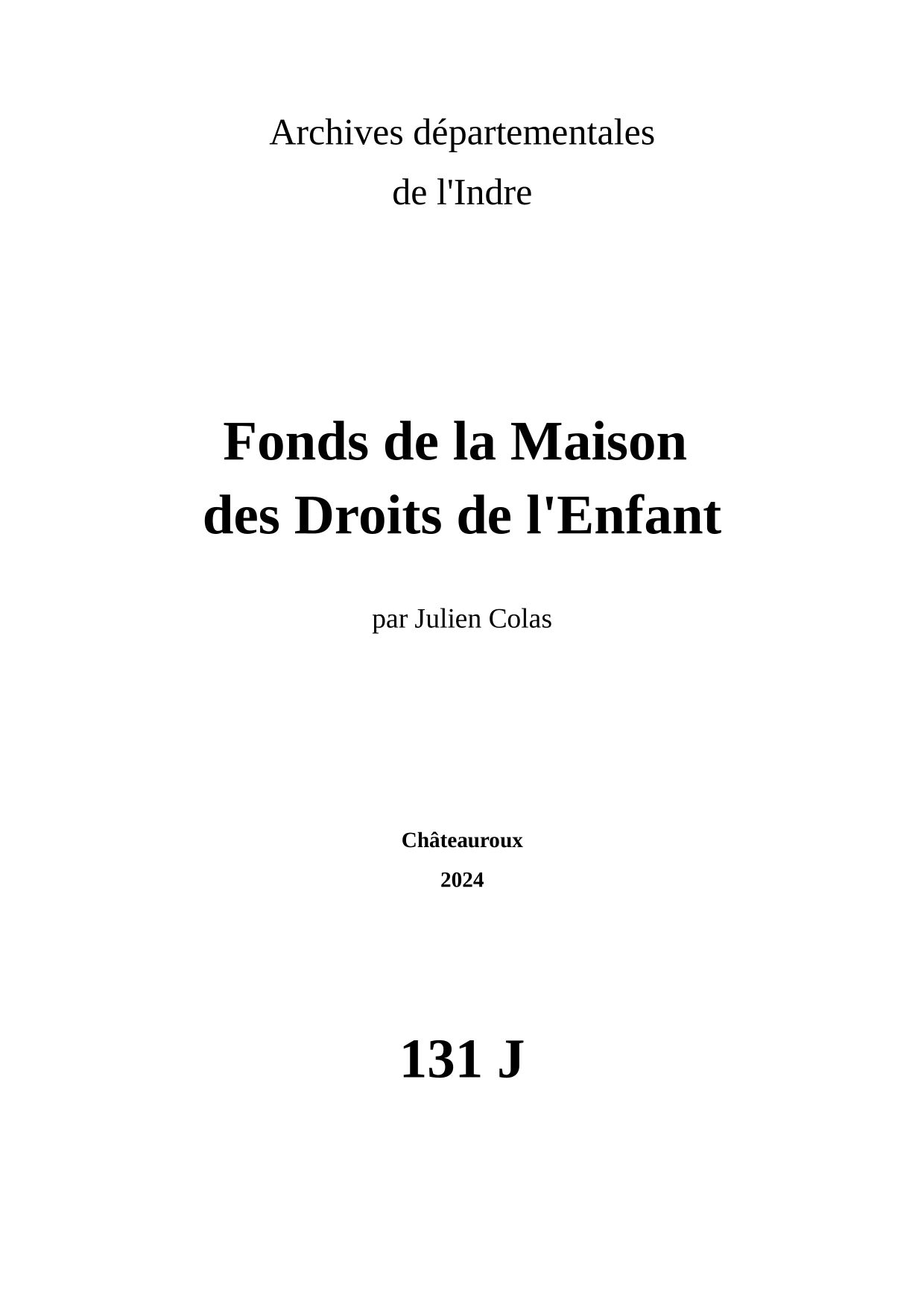 Fonds de la Maison des Droits de l’Enfant (131 J)