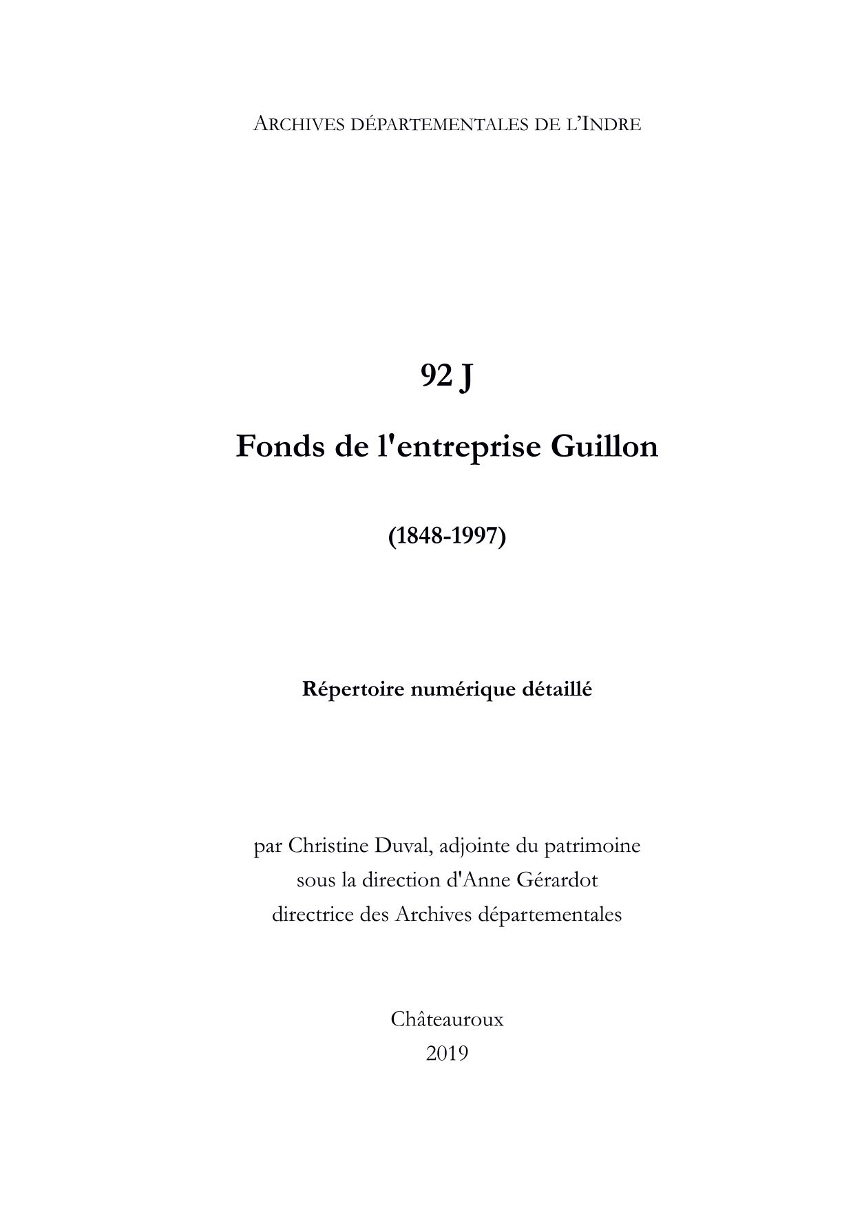 Fonds de l'entreprise Guillon (92 J)