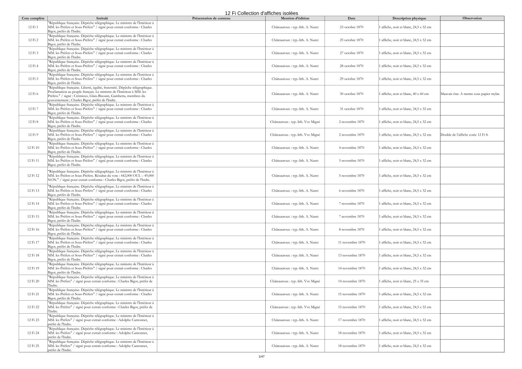 Affiches de format supérieur à 24 x 30 cm (12 Fi)