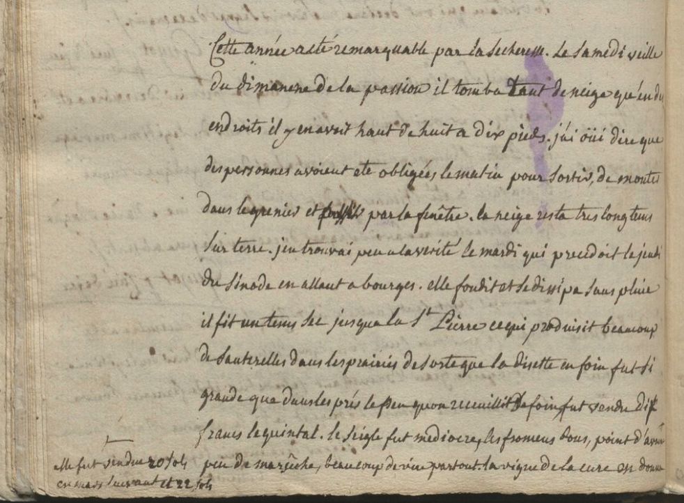 Il fit un tems sec jusqu’à la Saint Pierre, ce qui produisit beaucoup