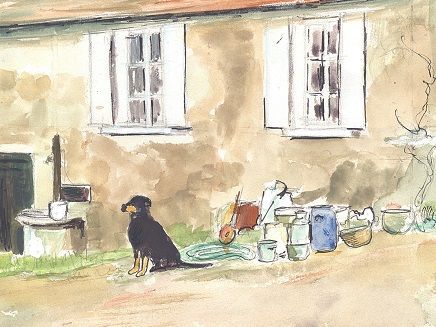 Dans le cadre d’un projet de valorisation du cadre de vie des exploitations agricoles dans l’Indre, le service environnement a constitué tout un dossier de « réflexions » qui s’accompagne de photographies et de dessins. Ceux que nous avons ici sélectionnés concernent une ferme du canton d’Écueillé. Les aquarelles ont été peintes par René Pêcherat d’après les photographies.