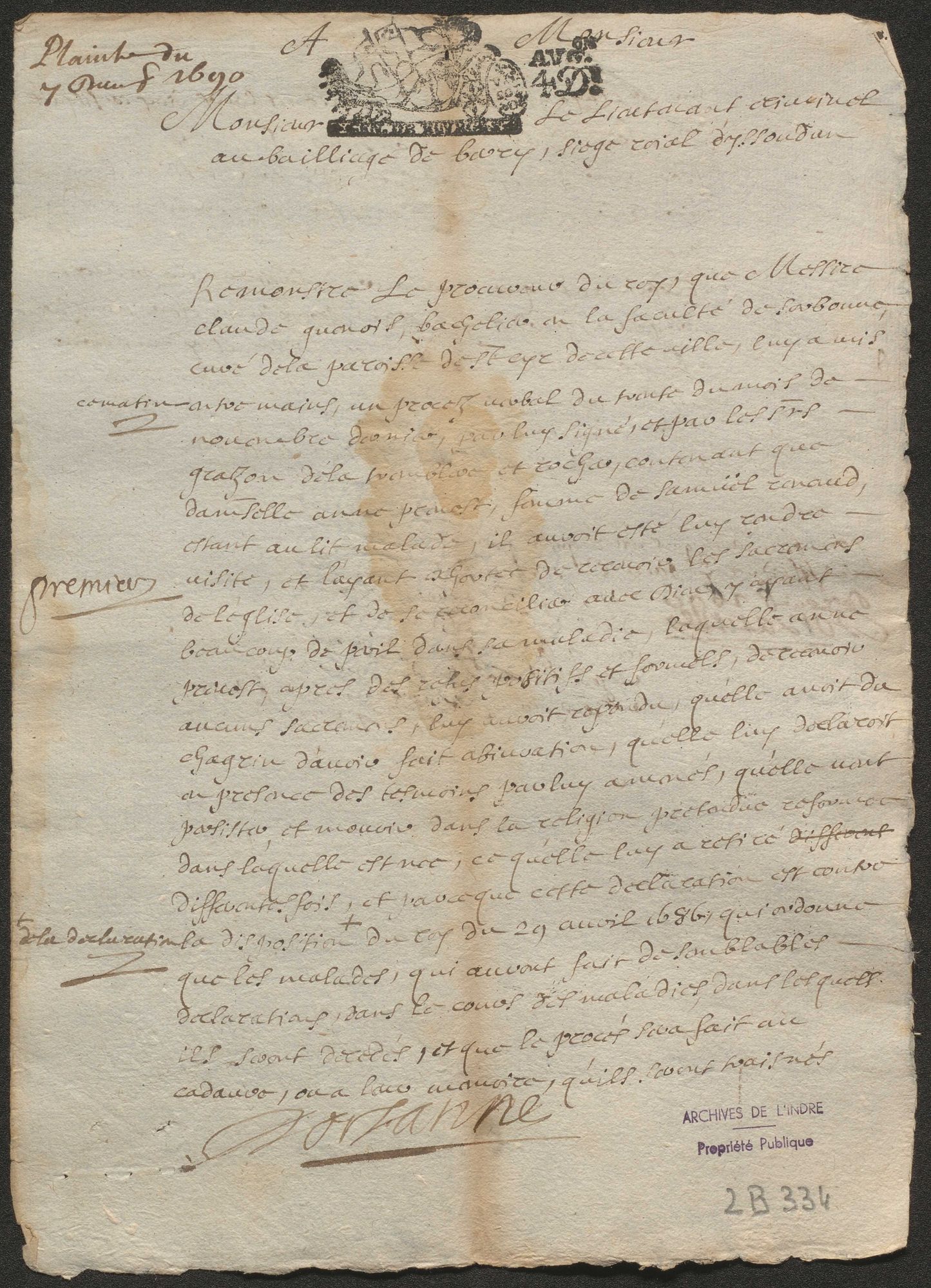 Archives départementales de l’Indre, 2 B 334