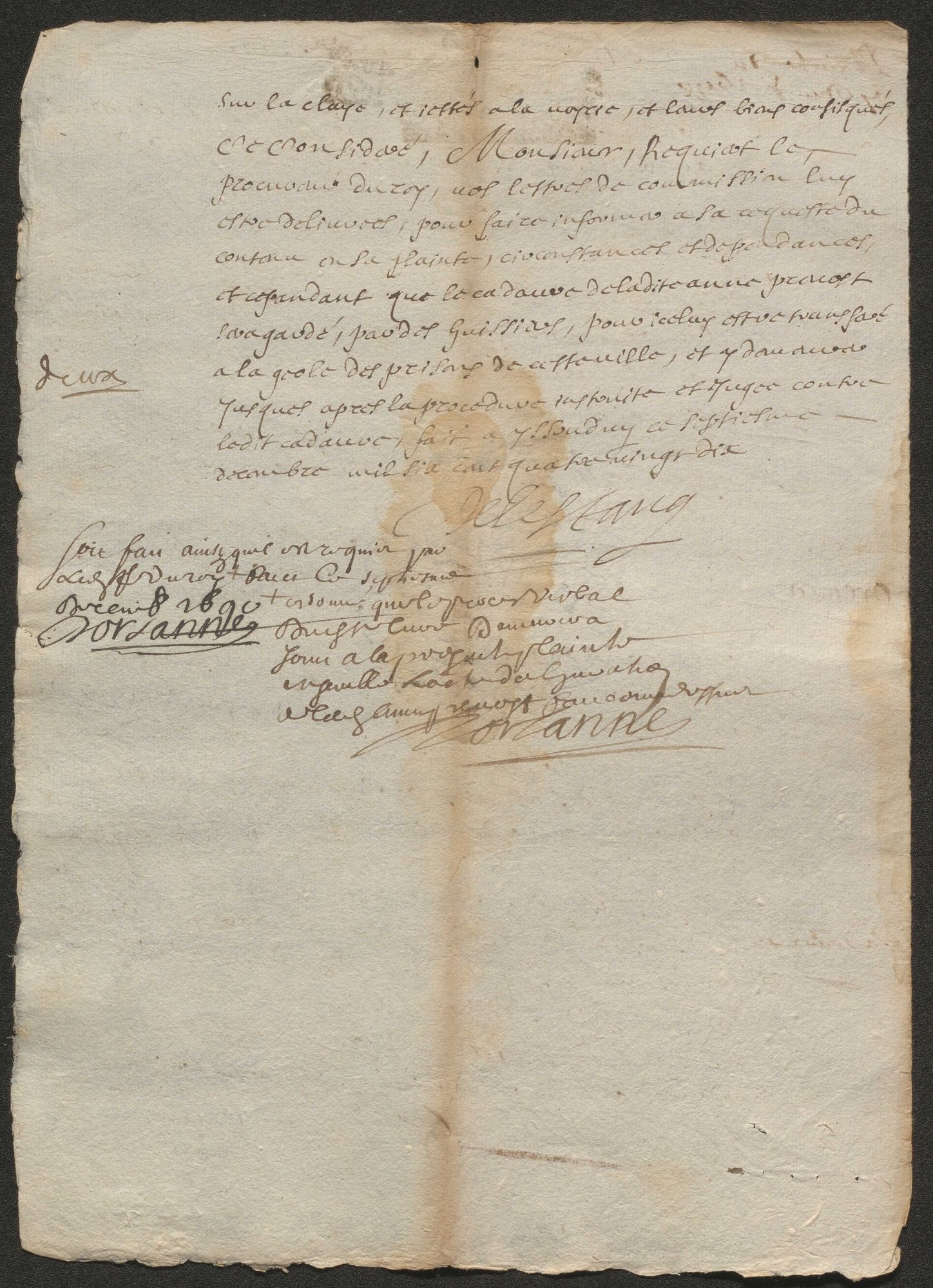 Un autre procès du 11 décembre 1690 est intenté à la mémoire d’Anne Prévost, femme de Samuel Renaud, elle aussi déclarée protestante relapse. Au curé venu lui administrer les derniers sacrements, elle répond "qu'elle avoit du chagrin d'avoir fait abjuration, q'elle luy déclaroit [...] qu'elle veut persister [à refuser l'extrême onction] et mourir dans la religion prétendue réformée dans laquelle est née". En application de la déclaration du roi du 29 avril 1686, la sentence du lieutenant criminel du bailliage d'Issoudun condamne son cadavre à être attaché à une charrette, traîné à travers la ville puis jeté à la voirie. On lui refuse ainsi le droit d’être enterrée et d’avoir une sépulture.
