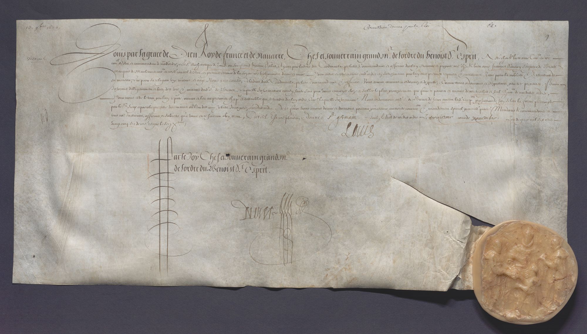 François Savary de Brèves, chevalier de l’ordre du Saint-Esprit : mandement de Louis XIII à l’archévêque de Tours (13 novembre 1625)