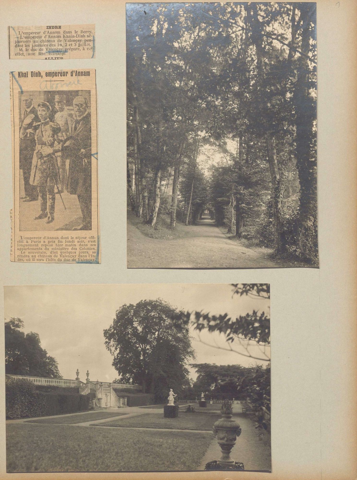Photographies, coupures de presse, menus, plans de table, etc. relatifs au séjour au château de Valençay de l'empereur d'Annam en 1922 (109 J 54).