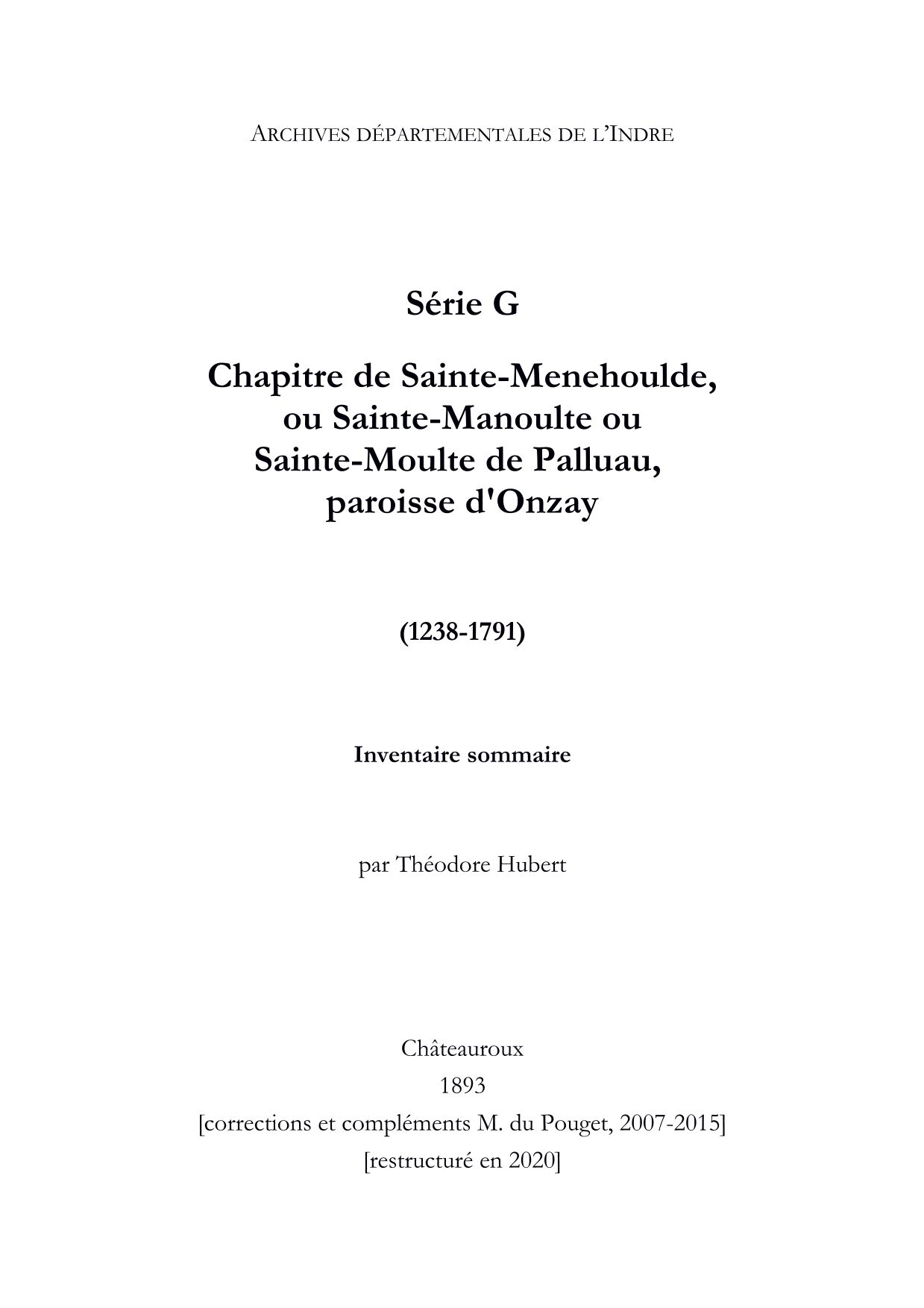 Chapitre de Sainte-Menehoulde, ou Sainte-Manoulte, ou Sainte-Moulte de Palluau, paroisse d'Onzay
