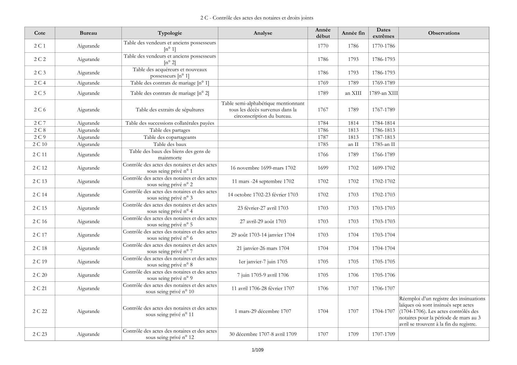 - Les registres de formalités : contrôle des actes des notaires, contrôle des actes sous seing privé, contrôle des registres paroissiaux et des extraits de registres paroissiaux, insinuation suivant le tarif, centième denier (actes translatifs de propriété de biens immeubles tenus en fief ou en censive), droits de sceau, registre des francs fiefs, etc.