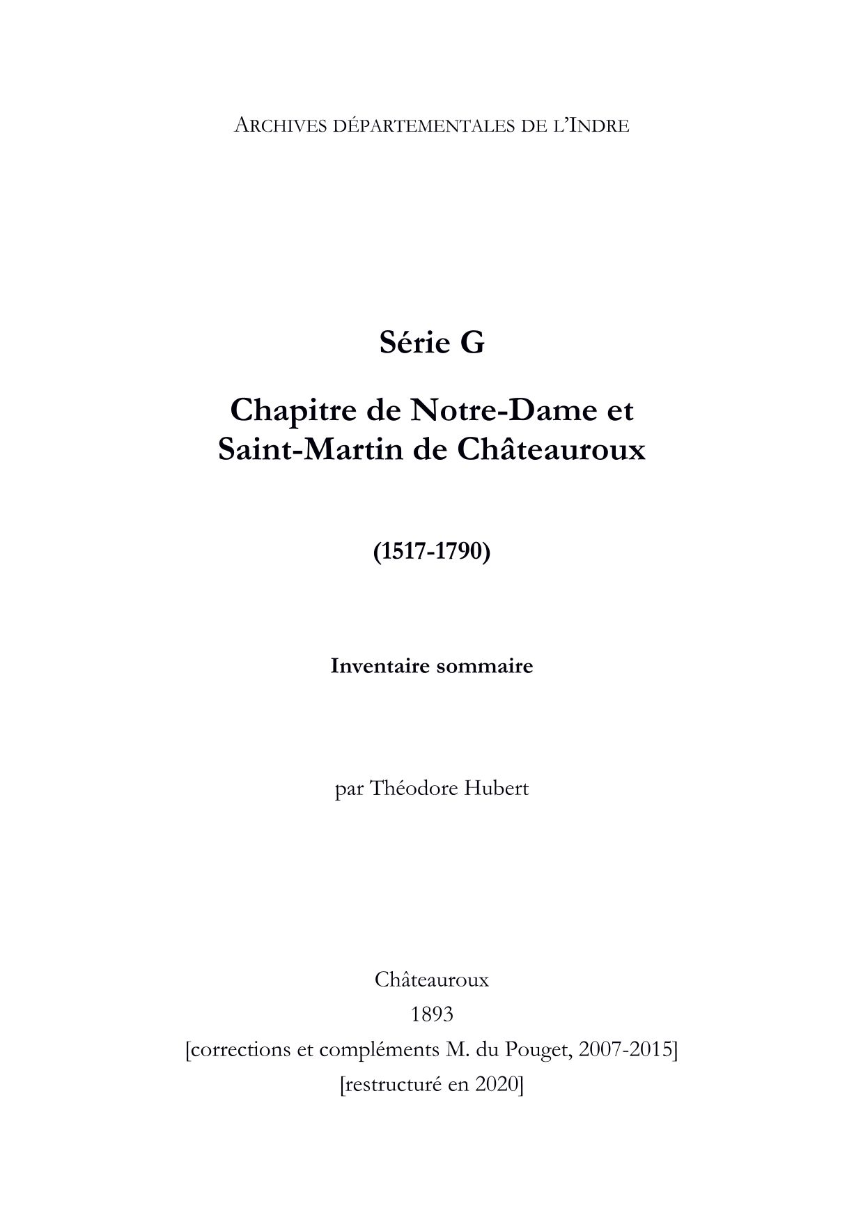 Chapitre fondé en 1622-1623 par le seigneur de Châteauroux, Henri II de Bourbon, prince de Condé, à la suite de la sécularisation des abbayes de Déols et Saint-Gildas de Châteauroux. Une partie des biens de ces deux abbayes fut dévolue au chapitre. Ce fonds, incomplet, comprend notamment des actes de fondation du chapitre (1622-1623), des actes capitulaires (1644-1789), des livres de compte (1650-1752) et de nombreux actes concernant les biens et revenus du chapitre qui étaient auparavant la propriété des abbayes de Déols et Saint-Gildas de Châteauroux : seigneurie de Châteauponsac, prieurés de Sainte-Cécile, du Pin, de Gargilesse, de la Chaise, etc.