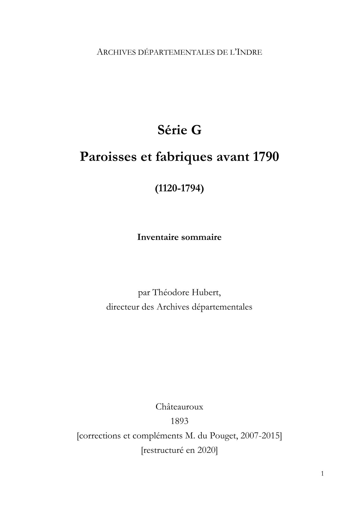 Le nombre des paroisses de l’actuel département de l’Indre a peu varié jusqu’à la Révolution. Il y avait alors 293 paroisses. Depuis la période révolutionnaire, 33 paroisses ont été supprimées et réunies à des communes voisines. Les Archives départementales de l’Indre conservent des documents provenant de 239 paroisses, documents remontant pour certains au XIIe siècle. Les archives paroissiales contiennent essentiellement des documents concernant la gestion des paroisses, les biens qu’elles possédaient, les titres de rentes appartenant aux cures, des documents judiciaires concernant les biens… Peu nombreux sont les documents concernant la vie même de la paroisse : nominations des curés et des prêtres desservants, visites pastorales, vie spirituelle des paroisses, cérémonies et administration des sacrements. Malgré ces lacunes, ce fonds forme cependant un ensemble intéressant pour l’histoire du département et de ses paroisses.