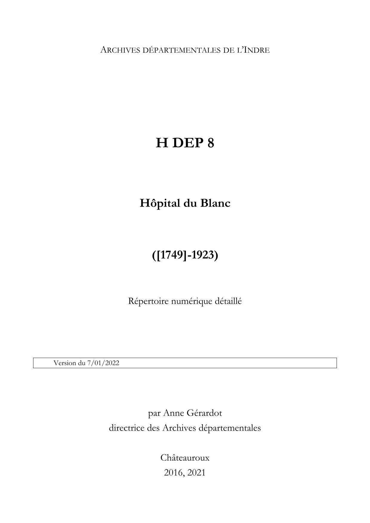 Hôpital du Blanc (H DEP 8)