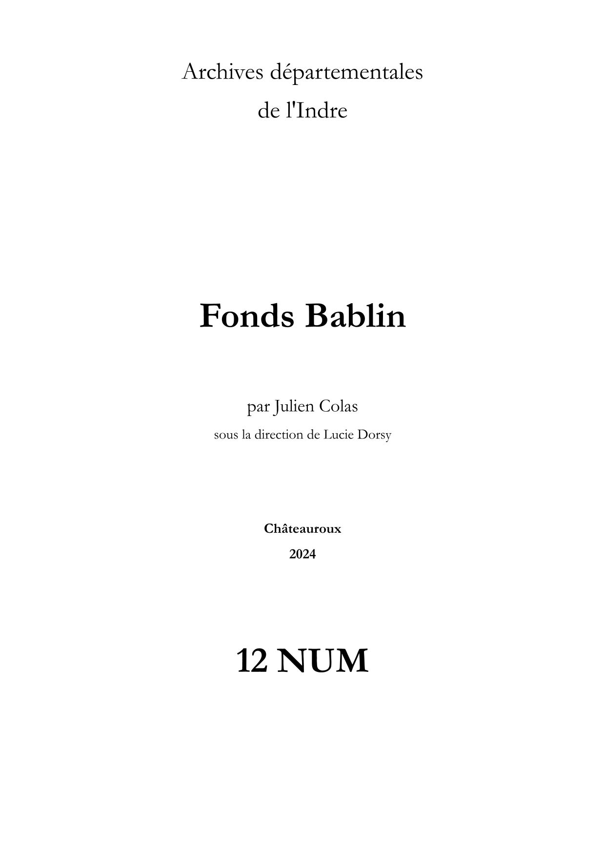 Ce fonds iconographique est constitué d’un unique album photographique, celui des membres de la famille Bablin, cultivateurs et éleveurs de brebis et béliers à Diors puis à Montierchaume, deux communes limitrophes. L’album se compose de 14 planches regroupant 45 photographies. Il présente des clichés de l’exploitation agricole et de son cheptel au tout début du XXe siècle lorsque la famille est installée au domaine de Fourches, lieu-dit de Diors, où Eugène Bablin vend des béliers dès 1904. Ensuite, en se mariant avec Régina Marie Tréfault, son fils Georges Bablin exploite la Métairie, à Montierchaume. Il s’ensuit, dans une seconde partie, une série de photographies familiales unissant les Bablin aux familles alliées, les Tréfault et Massicot. Enfin, quelques évènements locaux ponctuent la fin de cet album.