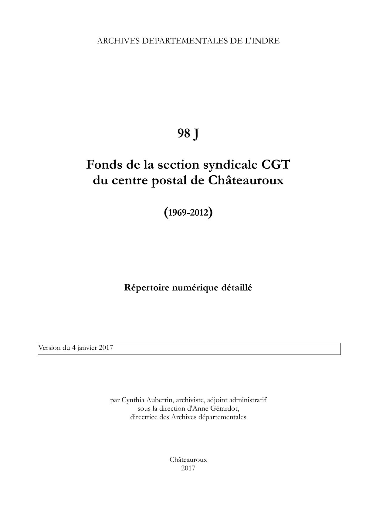 Fonds de la section syndicale CGT du Centre postal de Châteauroux-gare (98 J)