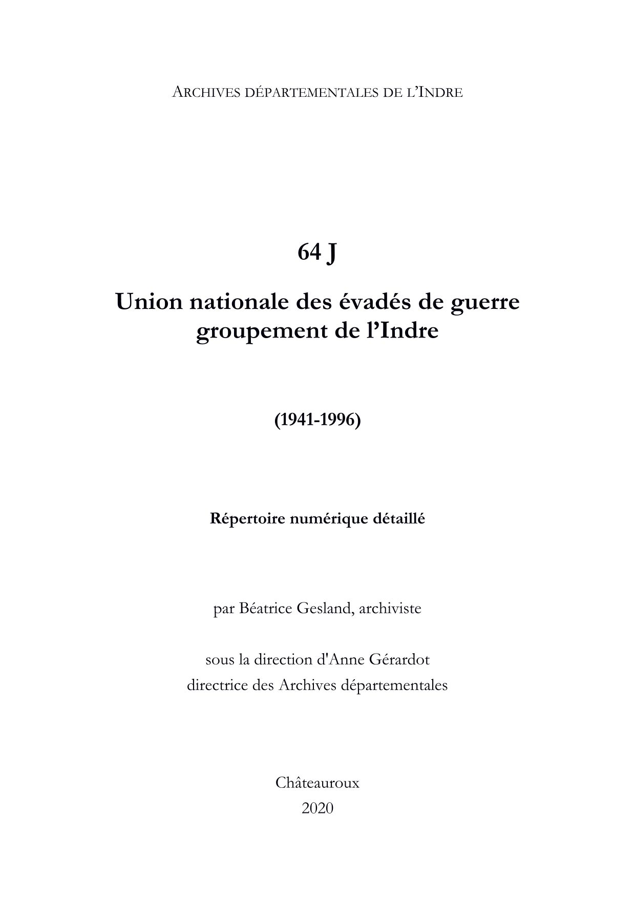 Fonds de l'Union nationale des évadés de guerre - groupement de l'Indre (64 J)