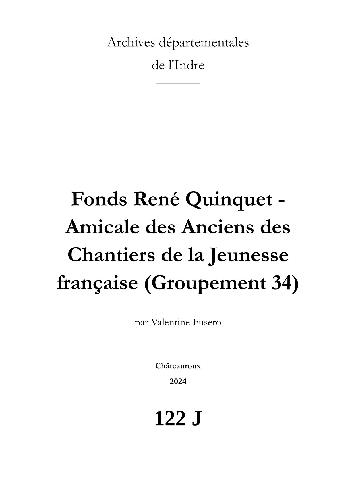Fonds René Quinquet - Amicale des Anciens des chantiers de la jeunesse française (groupement 34) (122 J)