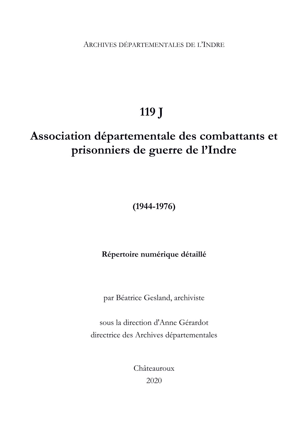 Fonds de l'association départementale des combattants et prisonniers de guerre de l'Indre (119 J)