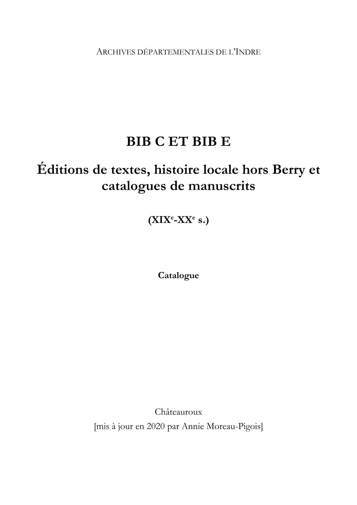 - BIB E : publications de textes, histoire locale hors Berry, catalogues de manuscrits
