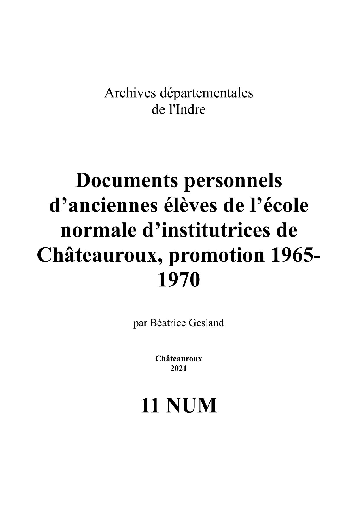 Documents personnels d’anciennes élèves de l’école normale d'institutrices de Châteauroux, promotion 1965-1970 (11 NUM)