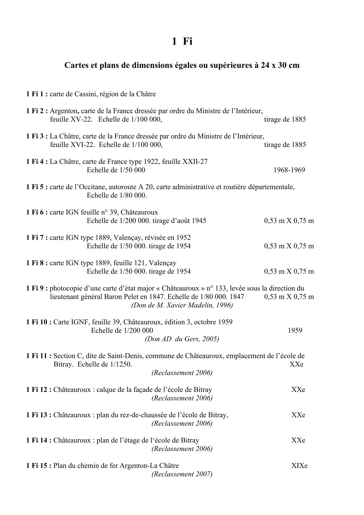 Cartes et plans de format supérieur à 24 x 30 cm (1 Fi)