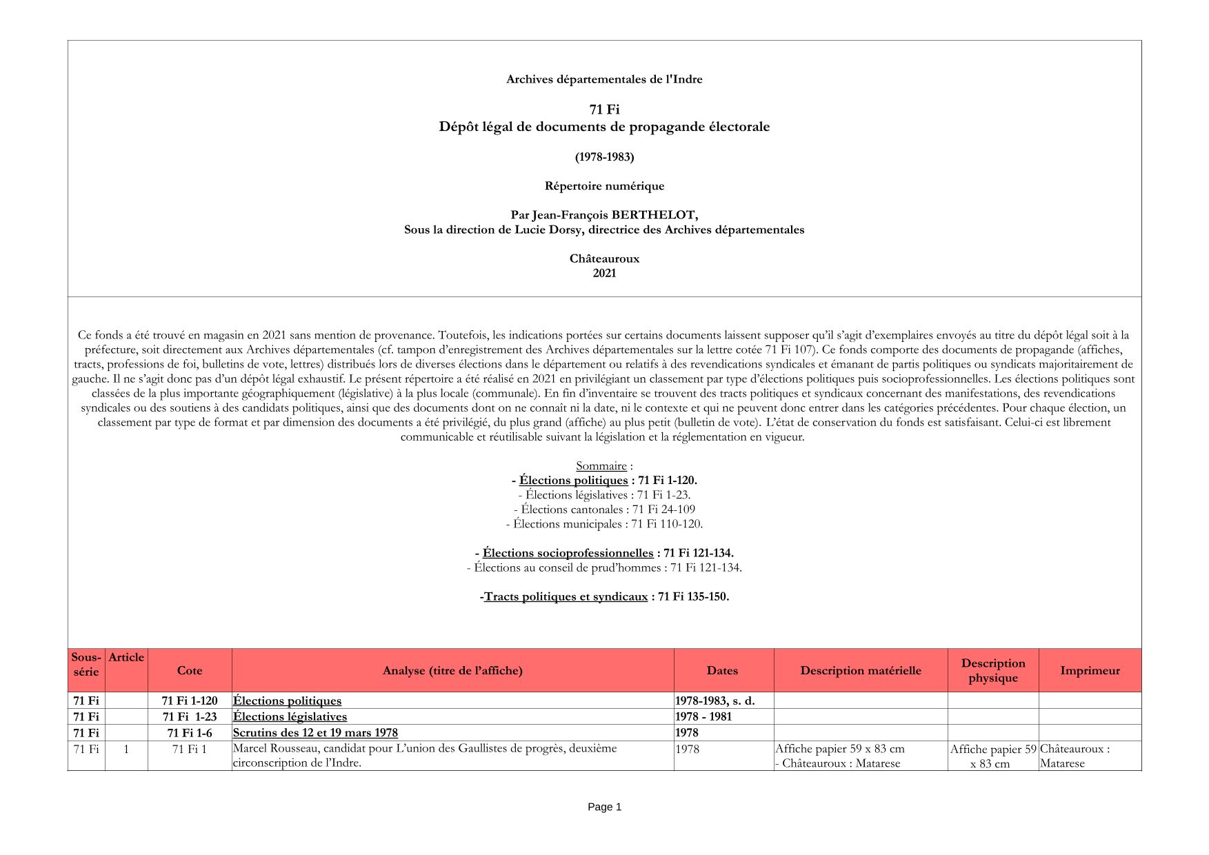 Dépôt légal de documents de propagande électorale (71 Fi)