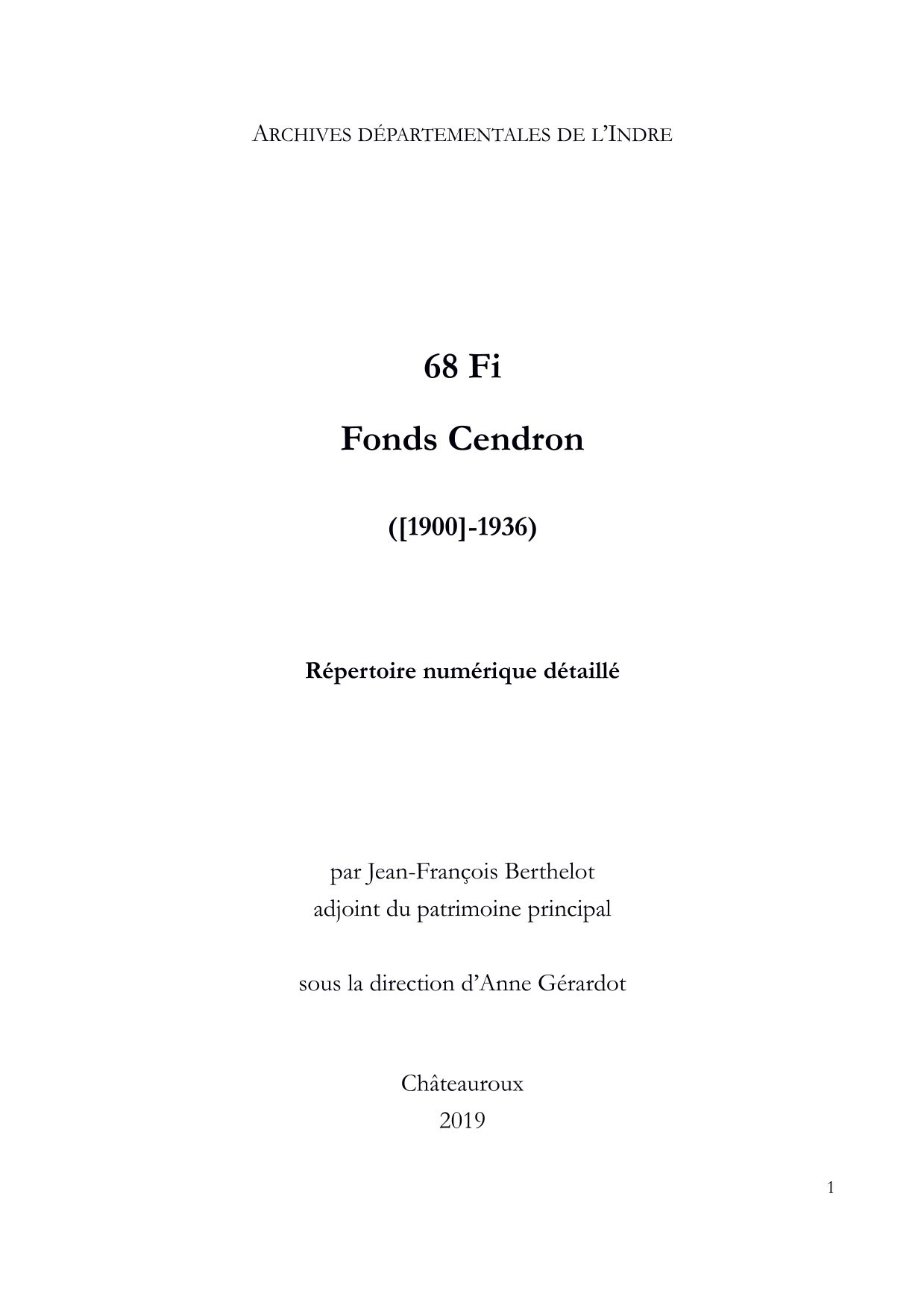 Ce petit fonds contient des photographies concernant la ville de La Châtre provenant de la famille Cendron, qui y possédait une entreprise d'horticulture. Il s'agit de photographies de commerces, de paysages ainsi que de diverses manifestations festives datant de la première moitié du XXe siècle.