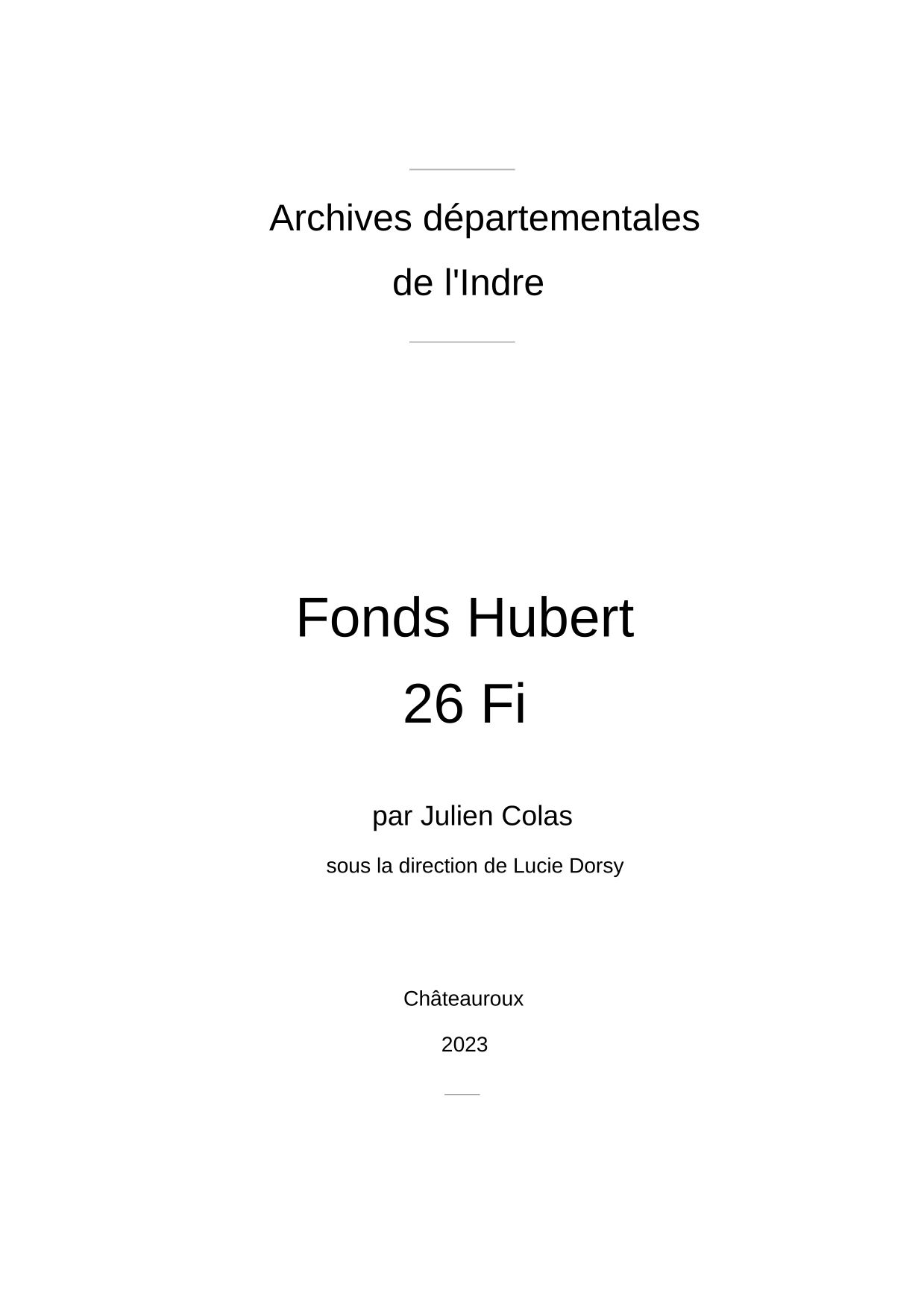 Eugène Hubert (1886-1940), archiviste départemental de l'Indre de 1895 à 1931, est à l'origine de cette riche collection photographique poursuivie par son fils Jean jusque dans les années 1950. Eugène consacre sa vie à l'histoire et aux archives du département. Sa passion pour l'art de la photographie le pousse à sillonner les routes et sentiers du territoire indrien à bicyclette, équipé de son appareil et de ses plaques de verre, et à prendre de nombreux clichés des communes de l'Indre, plus particulièrement des monuments et châteaux. La plupart de ses vues servaient à illustrer ses ouvrages, tels que Le Bas-Berry : histoire et archéologie du département de l'Indre, et ses articles paraissant notamment dans la Revue du Centre dont l'historien est le directeur jusqu'en 1903. Jean Hubert (1902-1994), archéologue spécialisé en architecture religieuse, poursuit l'œuvre photographique de son père Eugène, apportant aux clichés son goût pour l'art sacré.